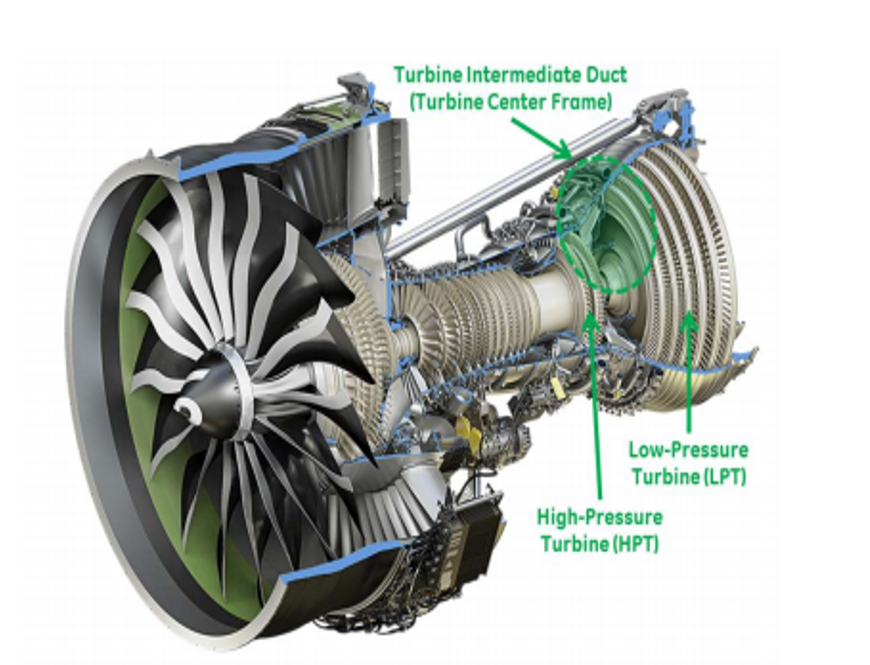 Moderne Flugtriebwerke werden heute von allen großen Triebwerksherstellern als Mehrwellen-Konfigurationen ausgeführt, da sich durch die optimale Wahl der Drehzahl und die Steigerung des Gesamtdruckverhältnisses der thermische Wirkungsgrad in einem erheblichen Maß steigern lässt, womit diese Entwicklung im Einklang mit den Zielen der Emissionsreduktion steht. Große Bedeutung gewinnen damit die Übergangskanäle zwischen den Stufen, vor allem der Übergangskanal zwischen der Hochdruckturbine (HPT) und der Niederdruckturbine (LPT), der die Strömung radial nach außen führt (Abb. 1). Der Übergangskanal ist nicht nur für eine effiziente Strömungsführung verantwortlich, sondern stellt durch seine Stützschaufeln auch ein wichtiges strukturelles Bauteil der Turbine dar, durch dessen Inneres Versorgungsleitungen laufen.